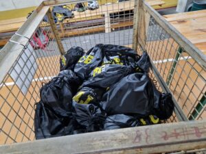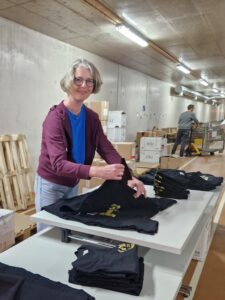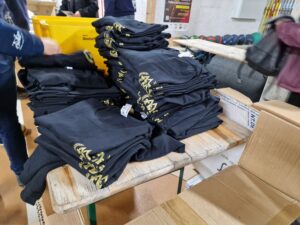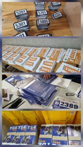 Wir packen Startbeutel, wir sortieren Nummern und Zeitmesser.